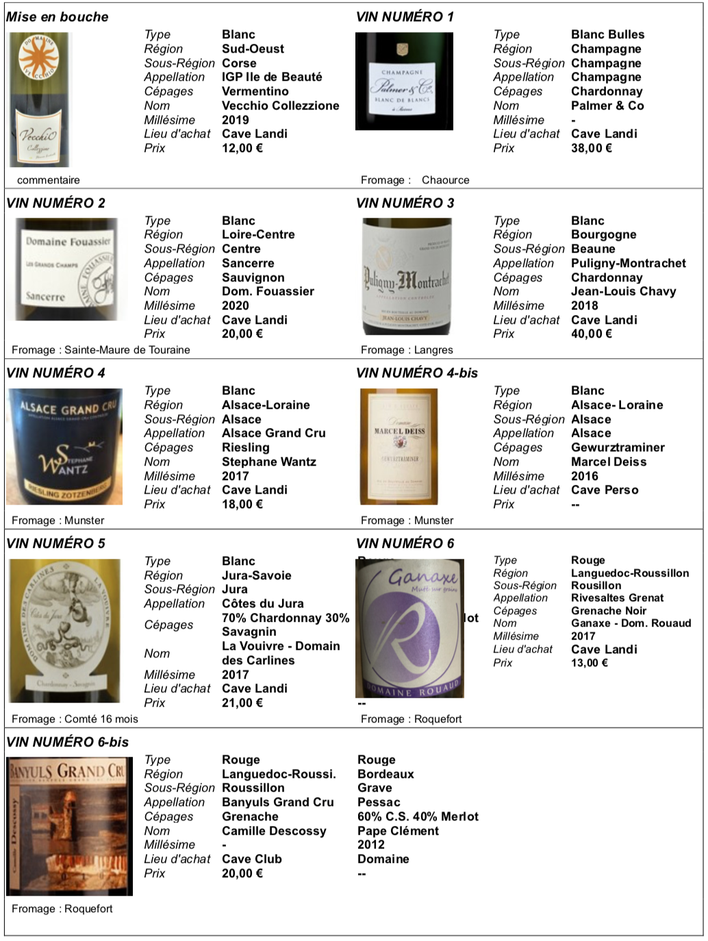 pour plus de détails, en particuliers sur les fromages, consultez la version imprimable !