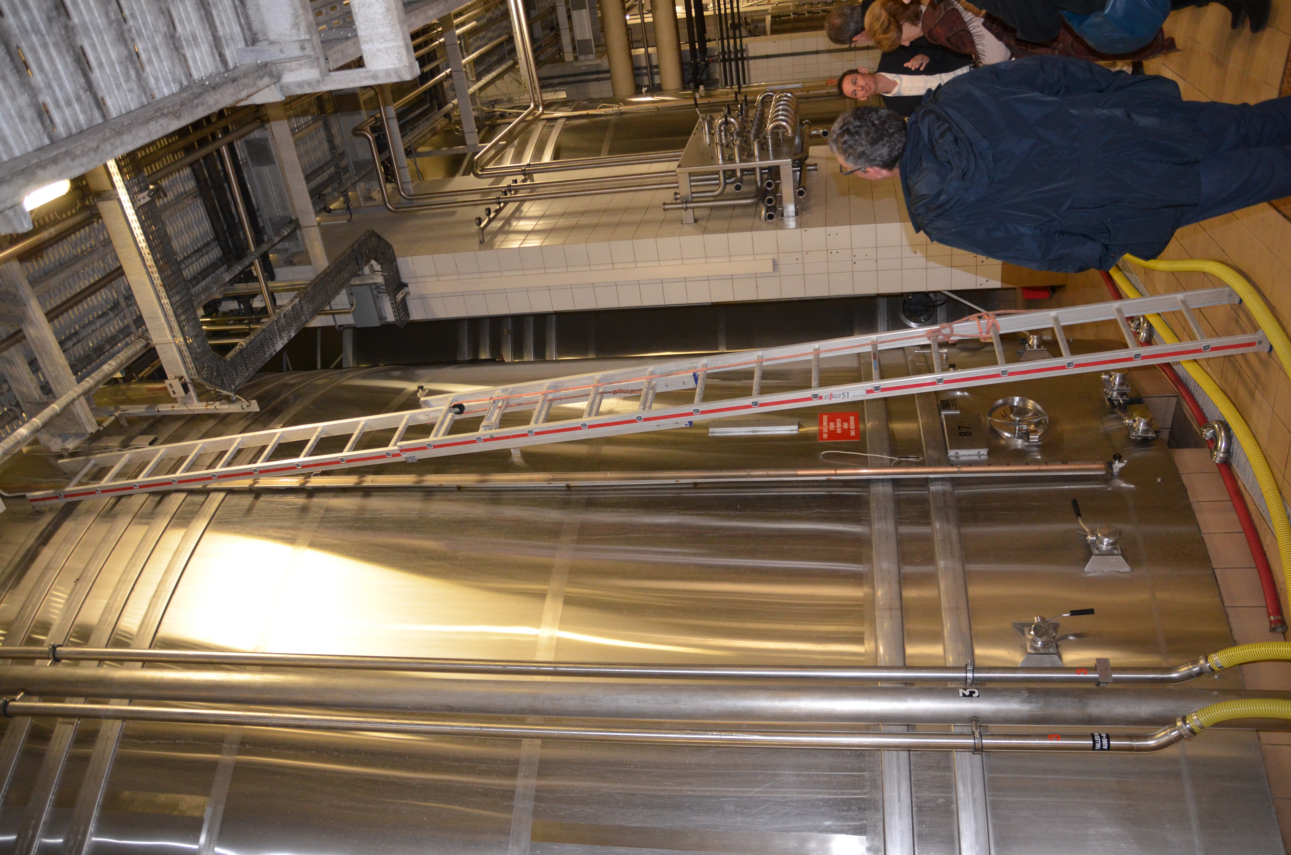 Cuve d'assemblage 400 hl. Les vins clairs des diverses cuvées y sont mélangés, et additionnés de levures et d'adjuvants permettant d'enclencher la seconde fermentation.