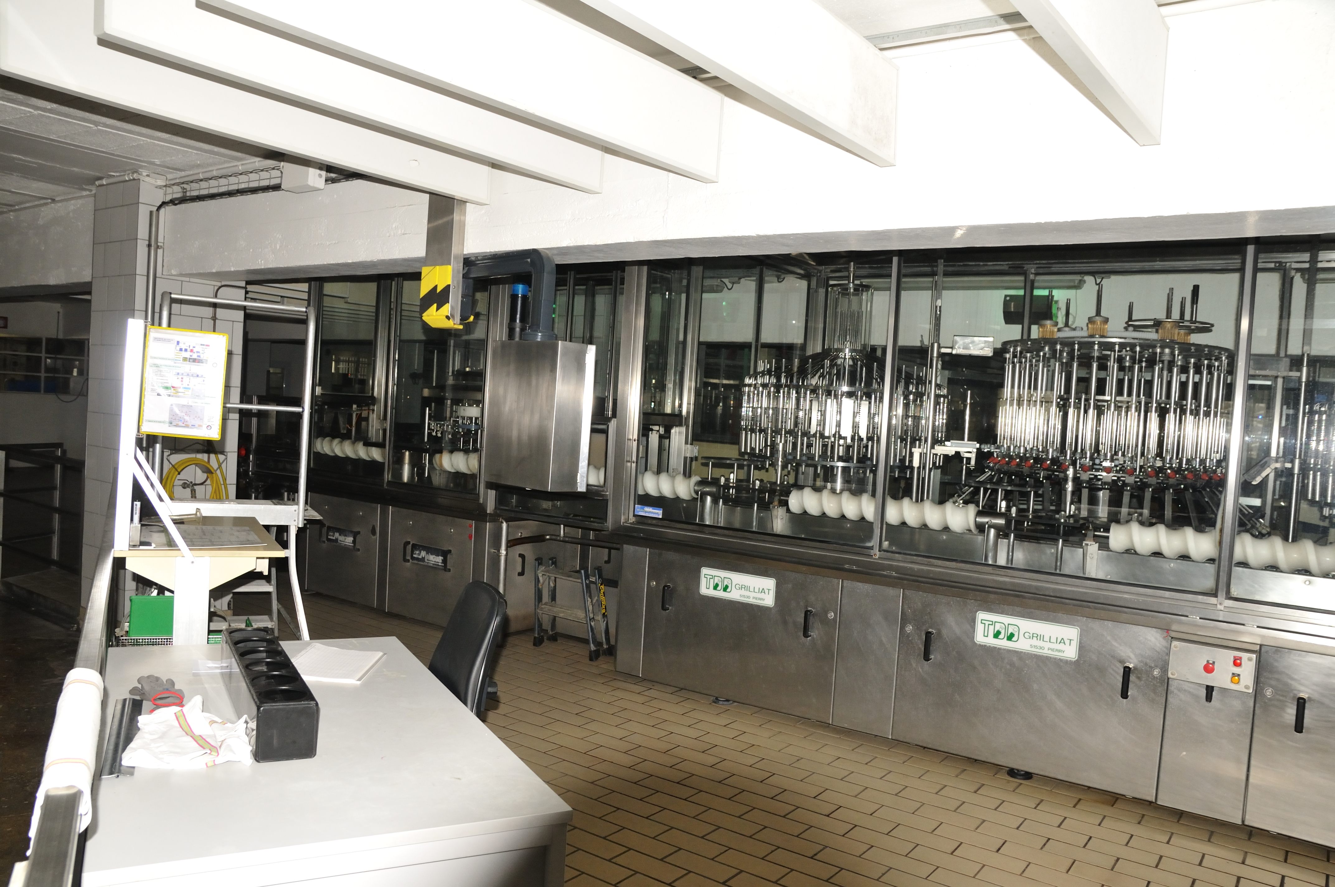 La chaîne de dégorgement: les bouteilles vont alors seulement quitter leurs palettes.