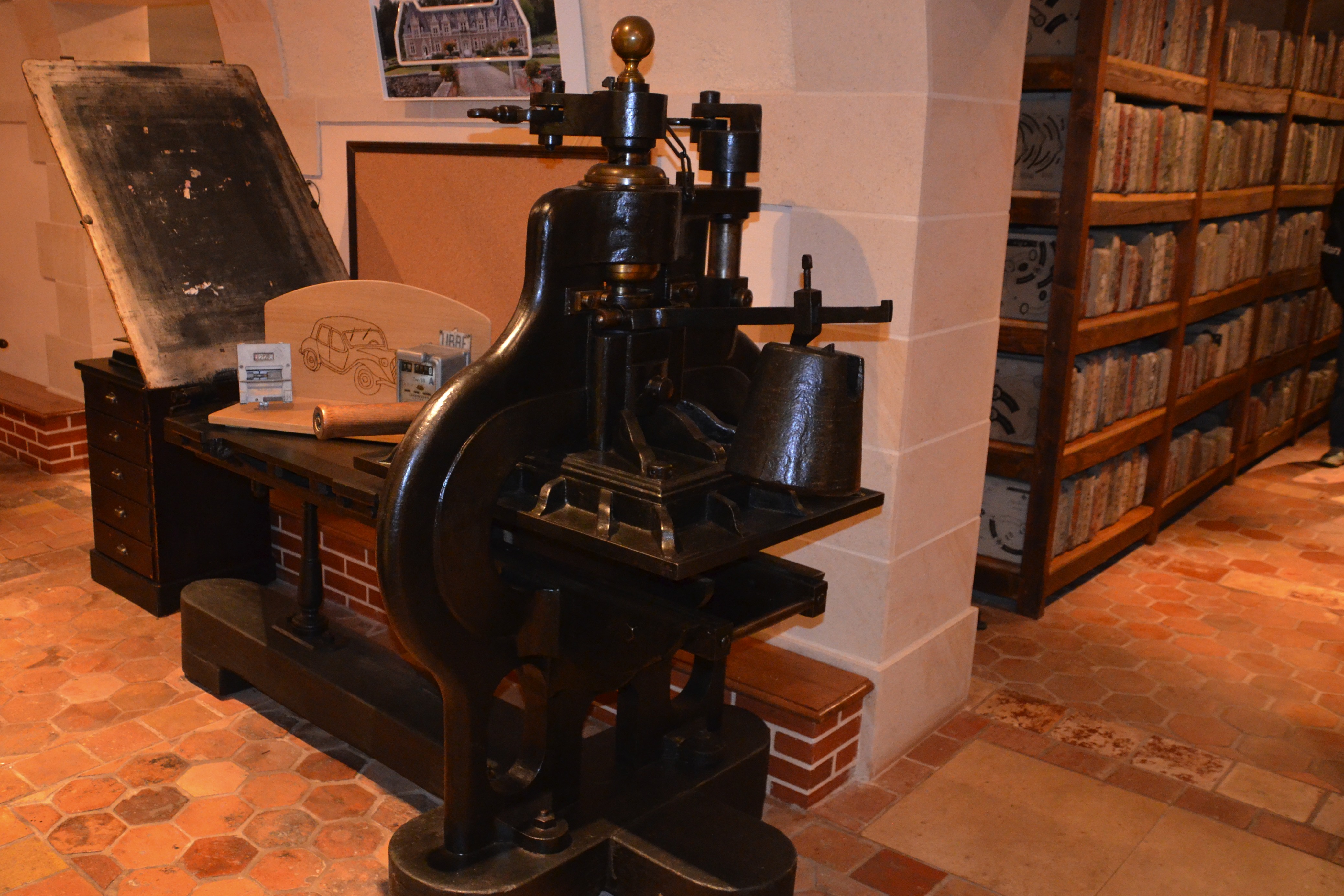 Presse à lithographier. Utilisée pour imprimer les étiquettes.