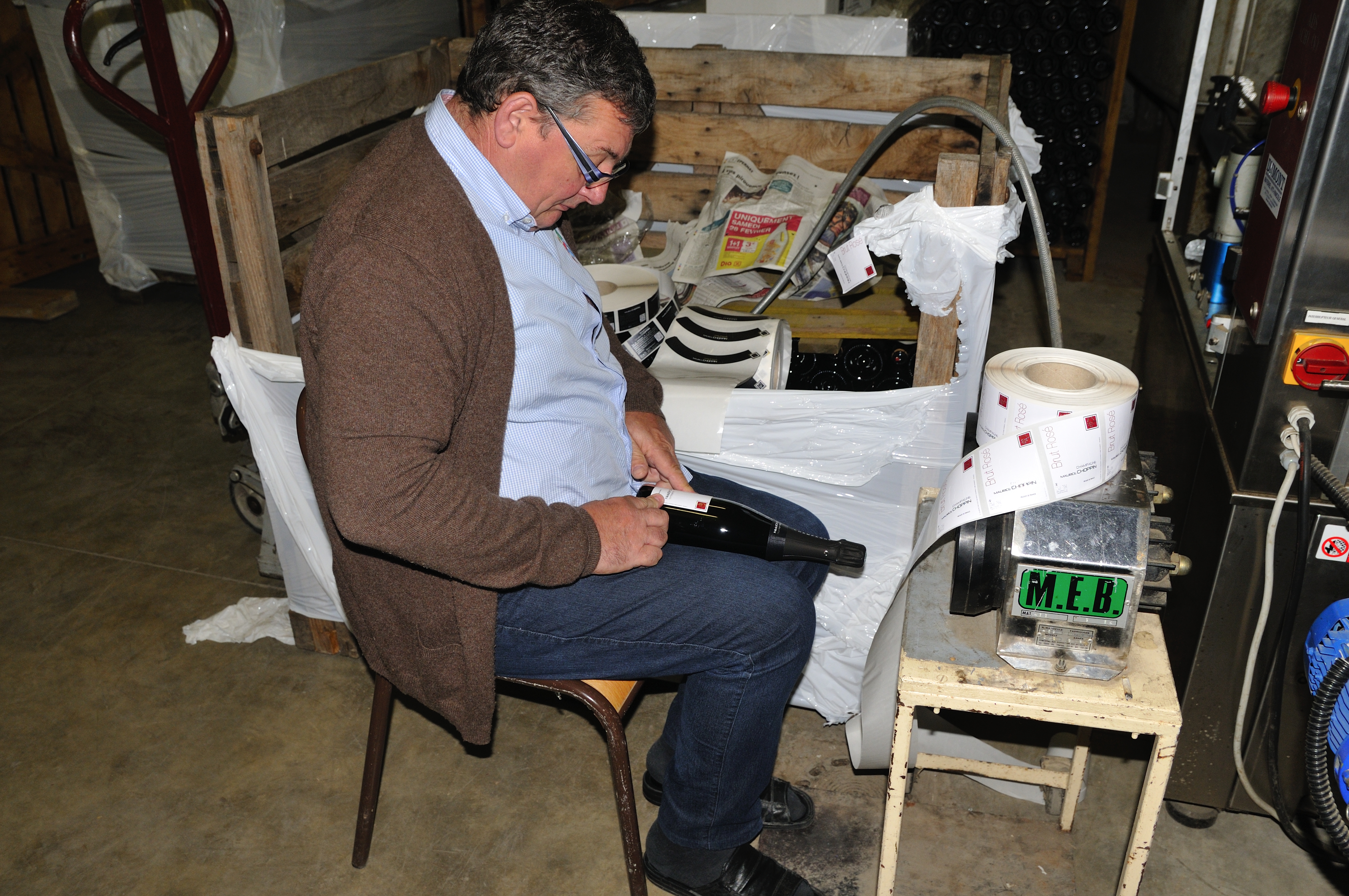 Maurice nous en fait la démonstration. La coiffe est mise par la machine, mais collerette et étiquettes doivent être positionnées à la main.