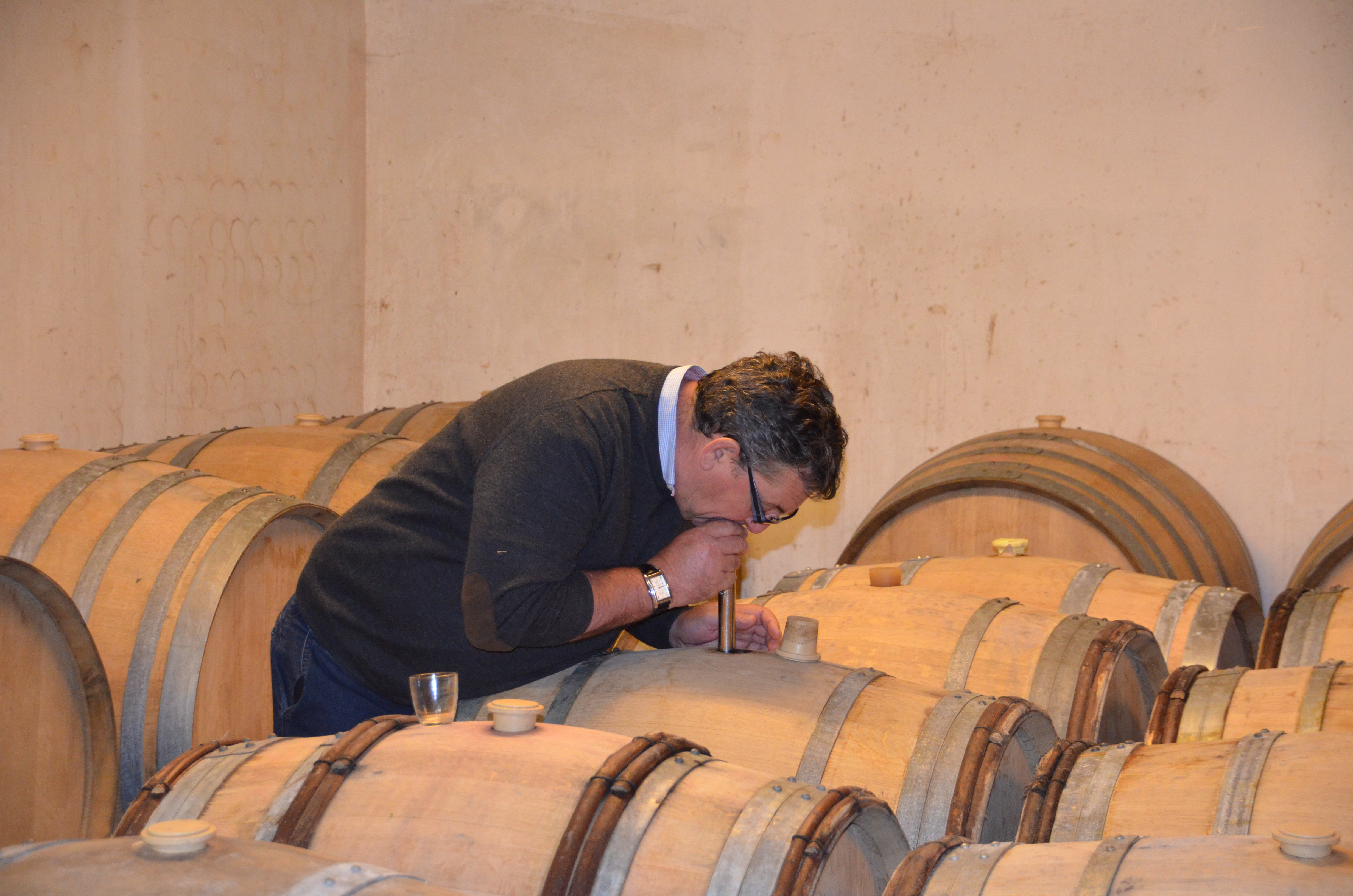 Le raisin est égrappé, puis mis à macérer sur les peaux 15 à 18h, avec un peu de bisulfite. On cherche une légère déliquescende des peaux, permetant de libérer les arômes. Le raisin est ensuite pressé, après 36h. au maximum.